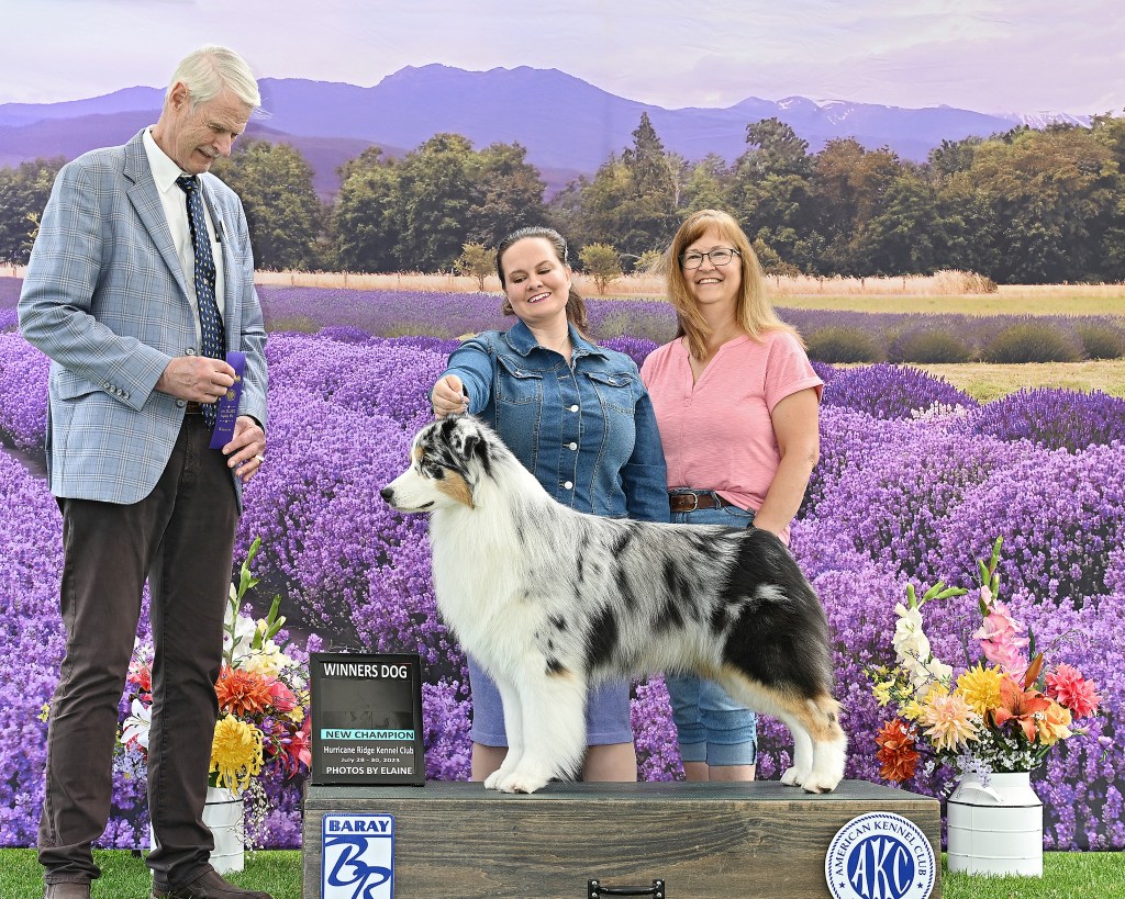 Acorn resides with Katy Doyle & family. Acorn finished his ASCA CH with 4 back-to-back majors his first trip on the road to California and Oregon in back-to-back show weekends! Acorn is also a trained Service dog as a Hearing dog and is also being trained in search in rescue! Look for him in the AKC ring in early 2024!